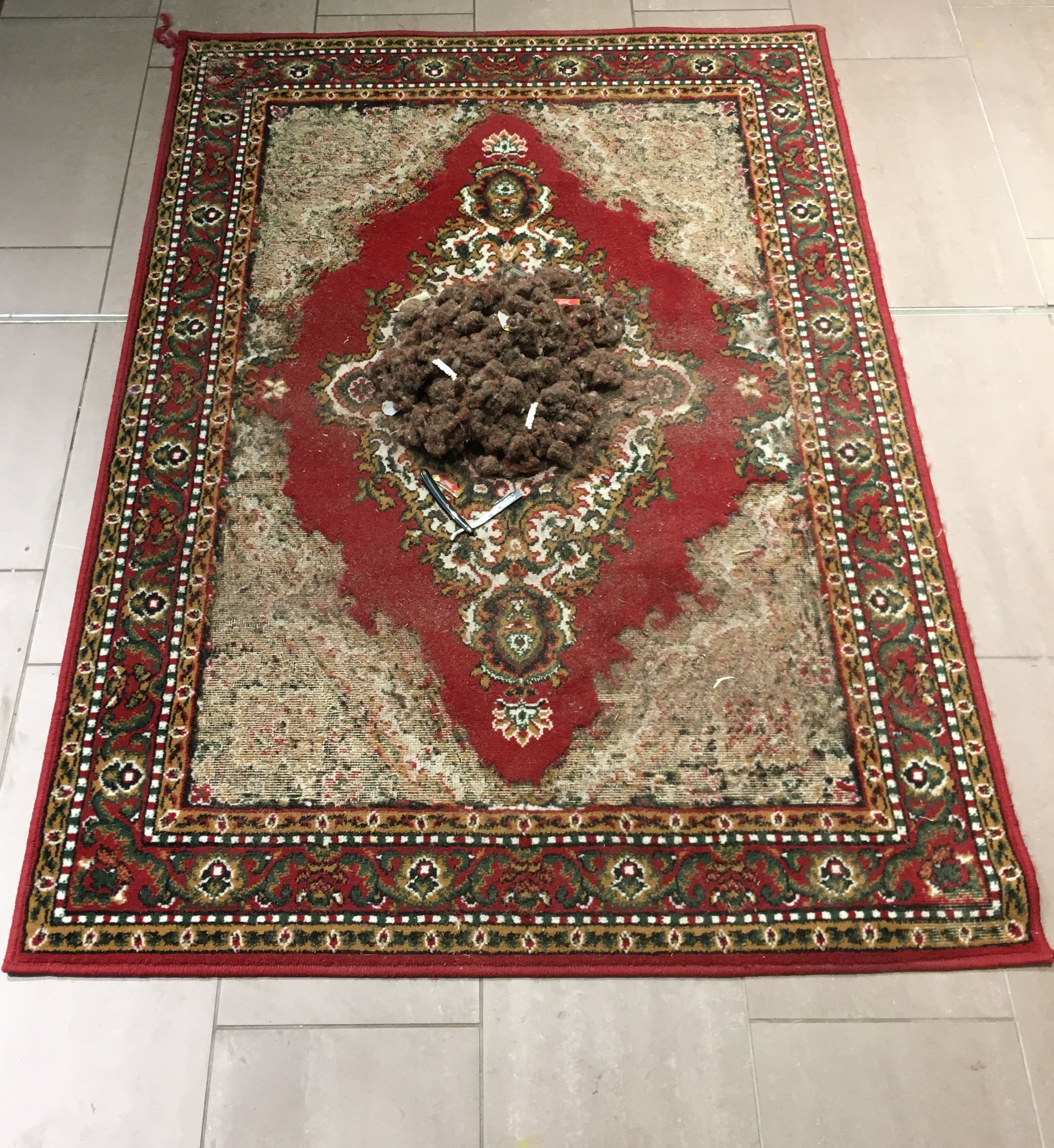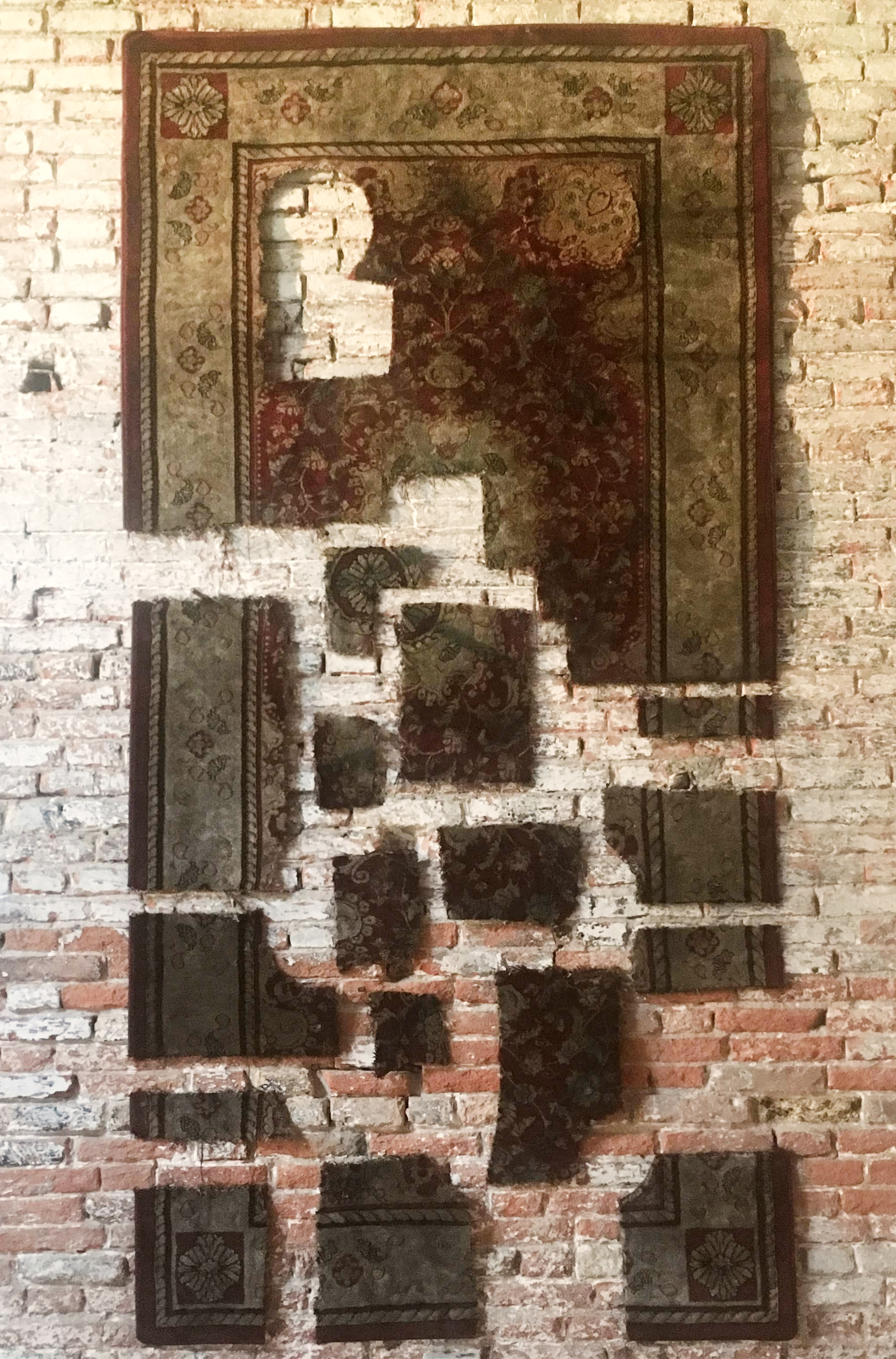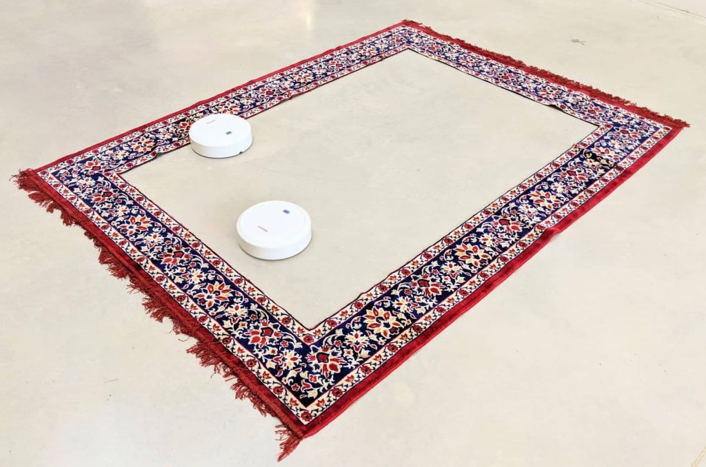 Everything is Fine, Persian Rug and Robot vacuum cleaners, https://vimeo.com/593250332 Autopsy of a HOME, Chalk Paint on Glass, Stain Glass film, painting, Video, Carpet, LEDS, Mobile PhoneTerrarium( Hyper reality ), Glass tank, Pieces of Berlin Wall, Legos, Plants , Stones, Snails, crystal soil water beads, 60 x 30 x35Falling, Shaved Persian Carpet, Wooden Timbers, 350cm x 250cmFour Conners Border backpackThe List 1The List 2Untitled Lost BoatFlyingSaving Lifeboat